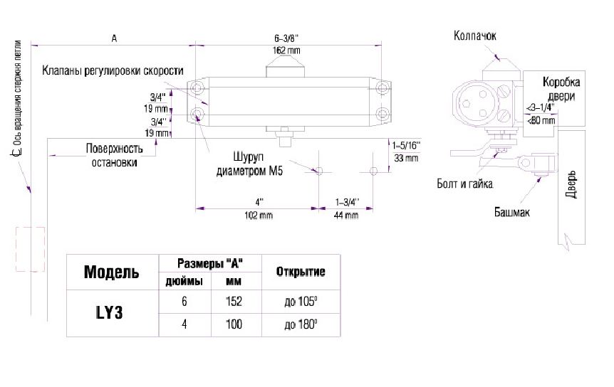 Доводчик NOTEDO DC-180 BROWN до 180кг корич. легкий характер