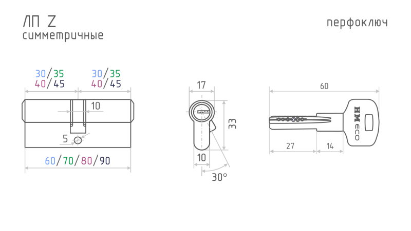 Цилиндровый механизм Apecs SM-90(30/60)-NI