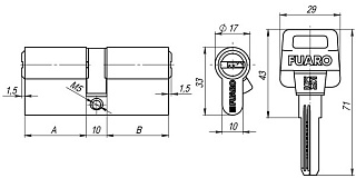 Цилиндровый механизм из ЦАМ с 5 английскими ключами. Ключи из стали. 5 пинов, цилиндр ключ-вертушка, размер 80мм (35в*45).