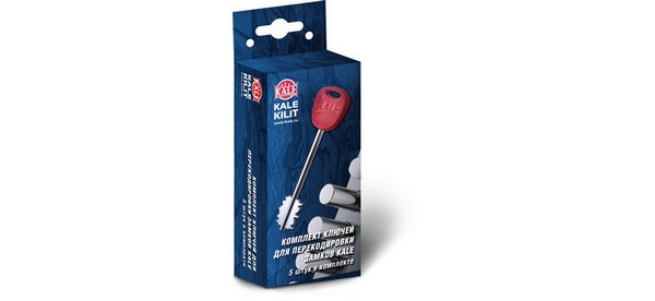 Комплект ключей для перекодировки замков KALE SMART LINE. Подходит для всех перекодируемых сувальдных замков Kale Kilit. В комплекте перекодировочный штифт, пять сувальдных ключей, карта для изготовления дубликатов ключей на заводе Kale и инструкция по перекодировке.