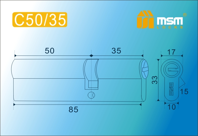 Цил.мех-зм MSM C50/35mm PB перфо.кл/кл. (Полированная латунь)