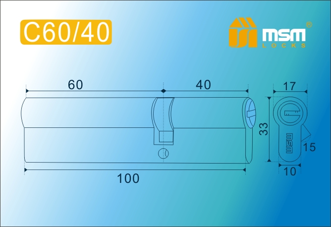 Цил.мех-зм MSM C60/40mm PB перфо.кл/кл. (Полированная латунь)
