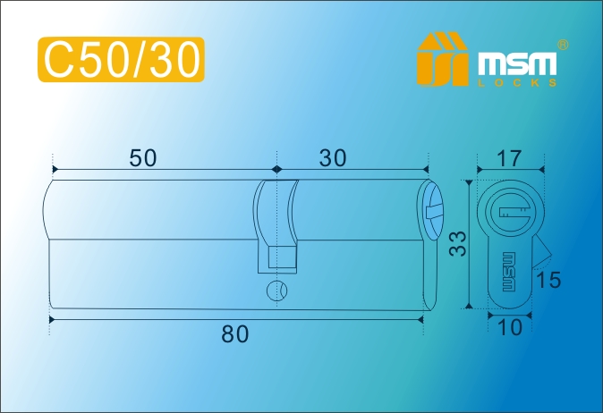 Цил.мех-зм MSM C50/30mm PB перфо.кл/кл. (Полированная латунь)