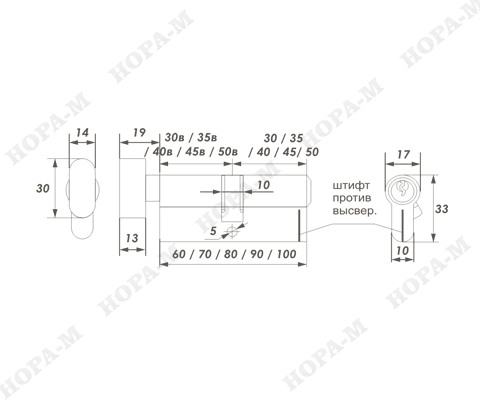Цил.мех-зм MSM CW65в/35mm SN перфо.кл/верт. (Матовый никель)