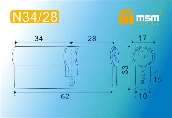 Цилиндровый механизм MSM N34/28mm PB (Полированная латунь) простой ключ/ключ
