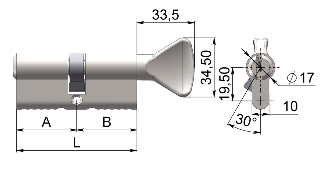 Цилиндр 70 PC (30С/40 ключ/завертка,хром бл) PALIDORE
