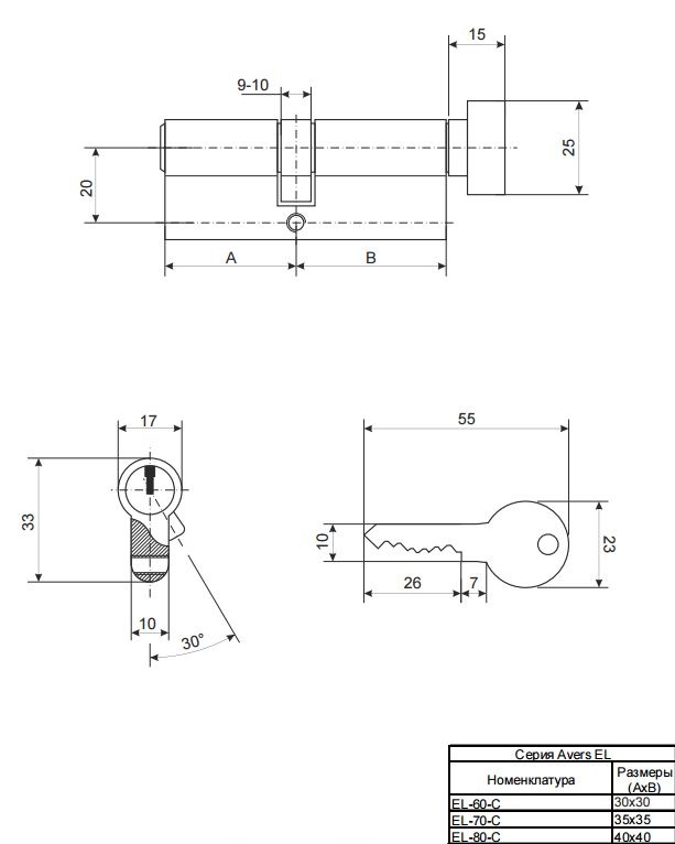 Цилиндр.мех-зм VЕTTORE ZN M60 ZC MBP (30T*30), 5 ключей (Чёрный Матовый)