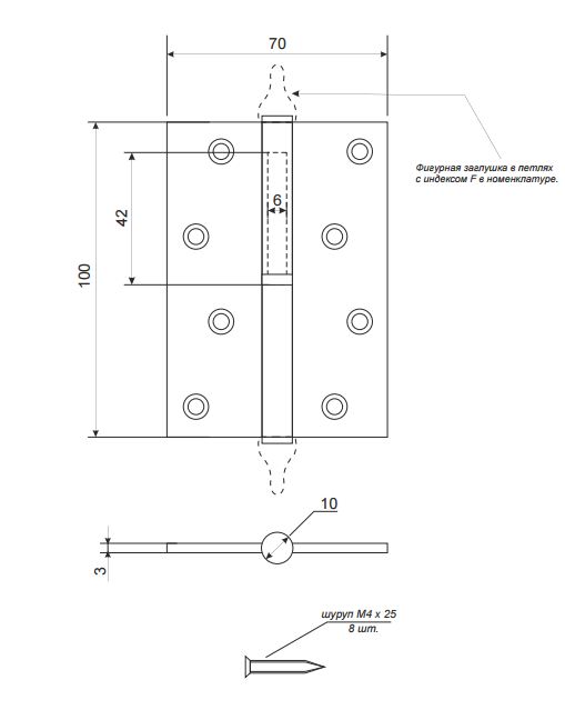 Петля врезная Apecs 120*80-B-Steel-NIS-R