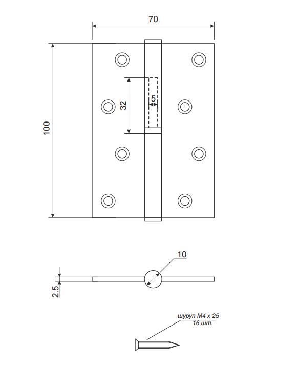Петля съемная IN4430SL-BL PB левая (413/BL-4 100x75x2,5) латунь