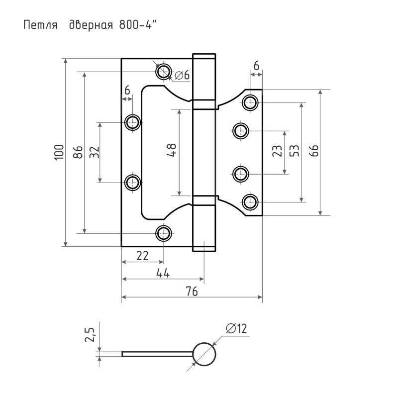 Петля "НОРА" 800-4'' FHP мат.лат. покр.без врезки