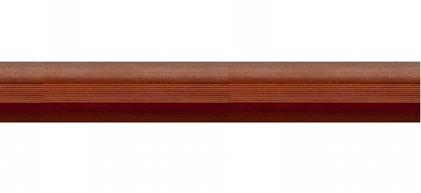 Порог-стык устанавливается для одновременного прижатия равноуровневого напольного покрытия, состыкованного друг с другом. Профиль -полукруглый алюминиевый. Покрытие декоративное под цвет - Красное дерево, c перепадом 4,0 мм.