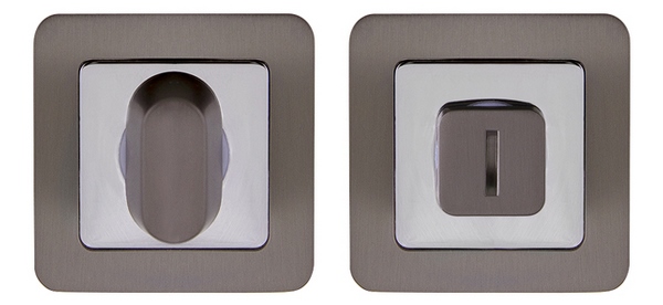 Поворотные ручки на квадратном основании Punto ET серии QR из коллекции SIMPLE LIVING подходят для установки на внутренние входные и межкомнатные двери. Материал изготовления: ZAMAK (сплав цинка, алюминия, магния и меди). Гальваническое покрытие прошло тест на устойчивость к коррозии в соляном тумане - более 72 часов. Цвет: графит/хром. В комплект входят: соединительный квадрат 6x80 мм, винты.