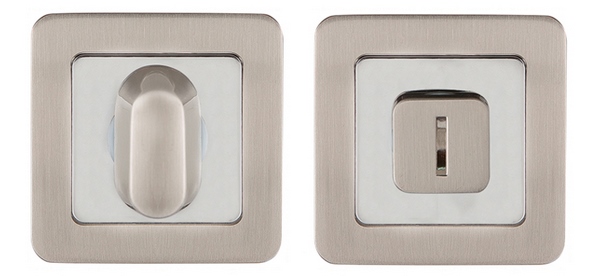 Поворотные ручки на квадратном основании Punto ET серии QR из коллекции SIMPLE LIVING подходят для установки на внутренние входные и межкомнатные двери. Материал изготовления: ZAMAK (сплав цинка, алюминия, магния и меди). Гальваническое покрытие прошло тест на устойчивость к коррозии в соляном тумане - более 72 часов. Цвет: матовый никель/хром. В комплект входят: соединительный квадрат 6x80 мм, винты.