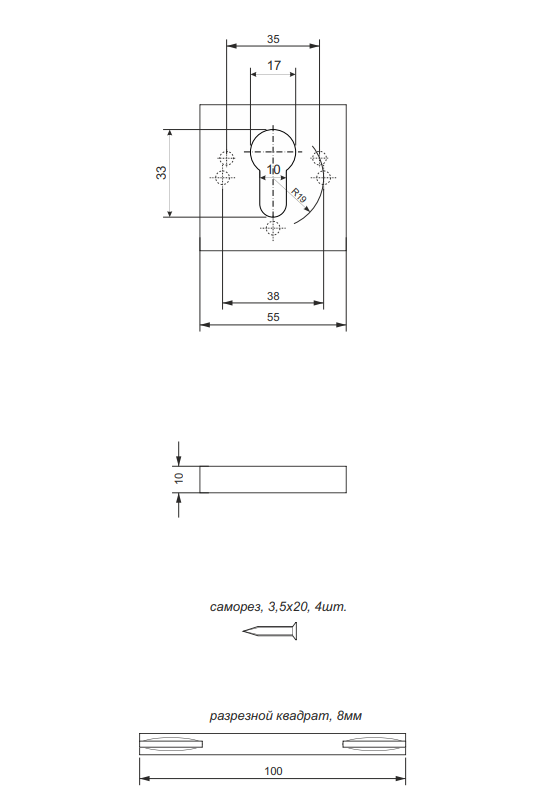 Накладка декоративная для евроцилиндра. Материал - Алюминий. Цвет - матовый алюминий. Покрытие - Анодирование. Тип крепления -Cаморезы ST3,5*20. Основание розеток накладок под цилиндр выполнено из пластика.