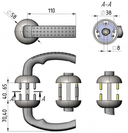 Ручки с новым механизмом поворота (угол поворота ручки 45 градусов),предназначены для любых типов дверей. В конструкцию ручек также введены усиленный зацеп под пружину, дополнительная возможность ручки-поднимать вверх.Рекомендованы для комплектации замков А8 серии "АССИСТЕНТ", а также для других замков с отверстием под квадрат 8х8. Для монтажа на большую толщину применяются дополнительные комплектующие - квадраты (имеются в продаже).