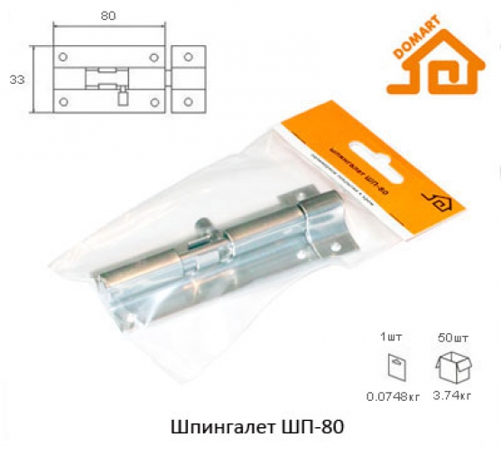 Шпингалет ДОМАРТ ШП-80 /хром/