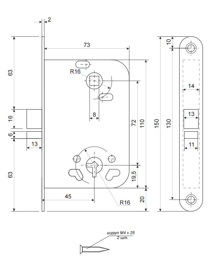 | Удаление ключевого отверстия (Backset) | 45 мм |