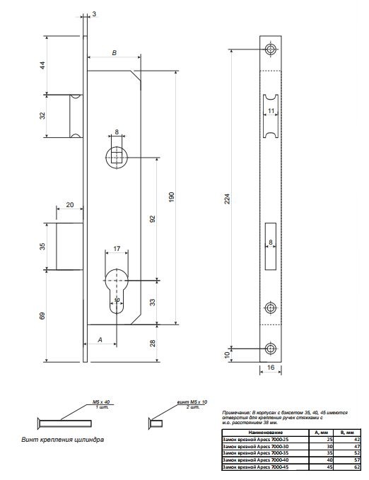 | Удаление ключевого отверстия (Backset) | 45 мм |