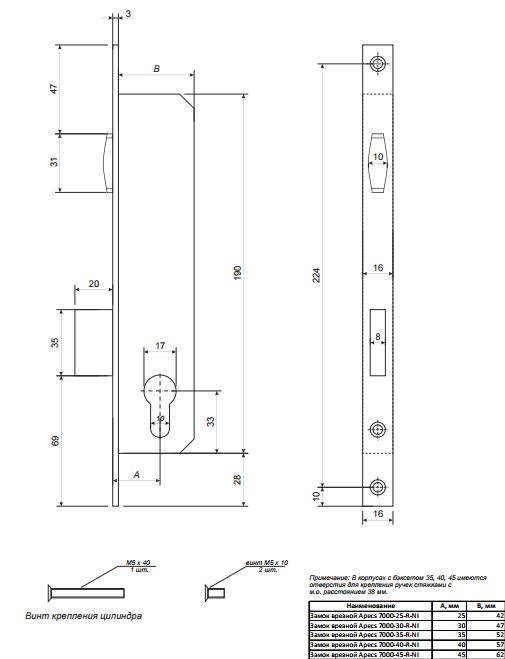 | Удаление ключевого отверстия (Backset) | 30 мм |