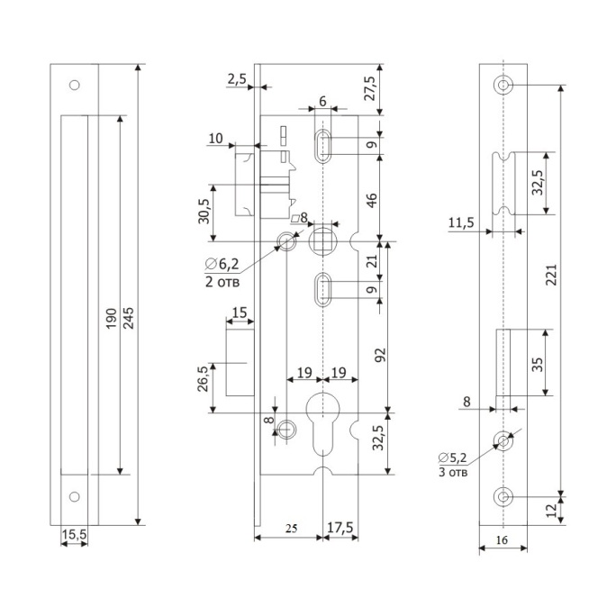| Расстояние от торцевой планки до центра отверстия под ручку D | 25/30/35/45мм |
