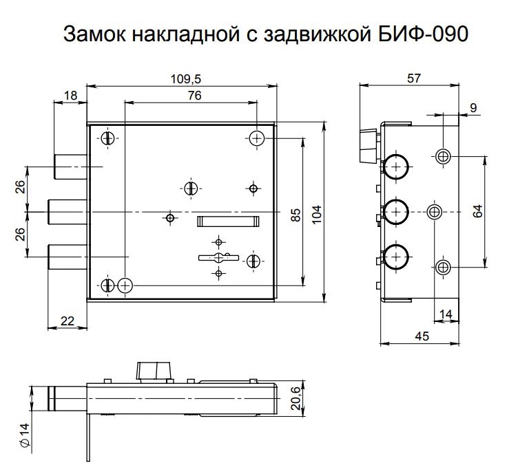 Замок накладной сувальдный. Засов изготовлен из трех стальных цилиндрических стержней диаметром 16 мм. Выход засова 22 мм. Замок открывается и закрывается ключом, снаружи и изнутри. Корпус покрыт защитной полимерной краской. В комплекте 3 ключа.
