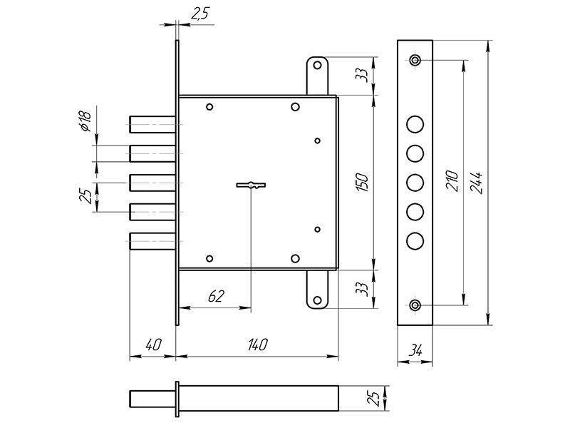 Замок врезной BORDER 70927 D 8-8 т (аналог Blockido)