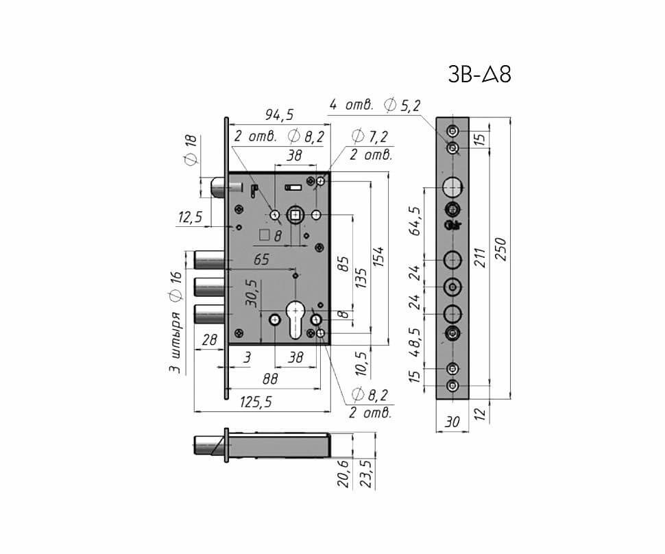 Врезной замок предназначен для металлических дверей и снабжен засовом и защелкой. Вылет засова 26 мм. Диаметр штырей засова 15,8 мм Замок закрываеться на два полных оборота. Закрытие замка происходит поворотом ручки вверх. Замок имеет новый удобный принцип настройки поворота защелки на левое или правое исполнение.