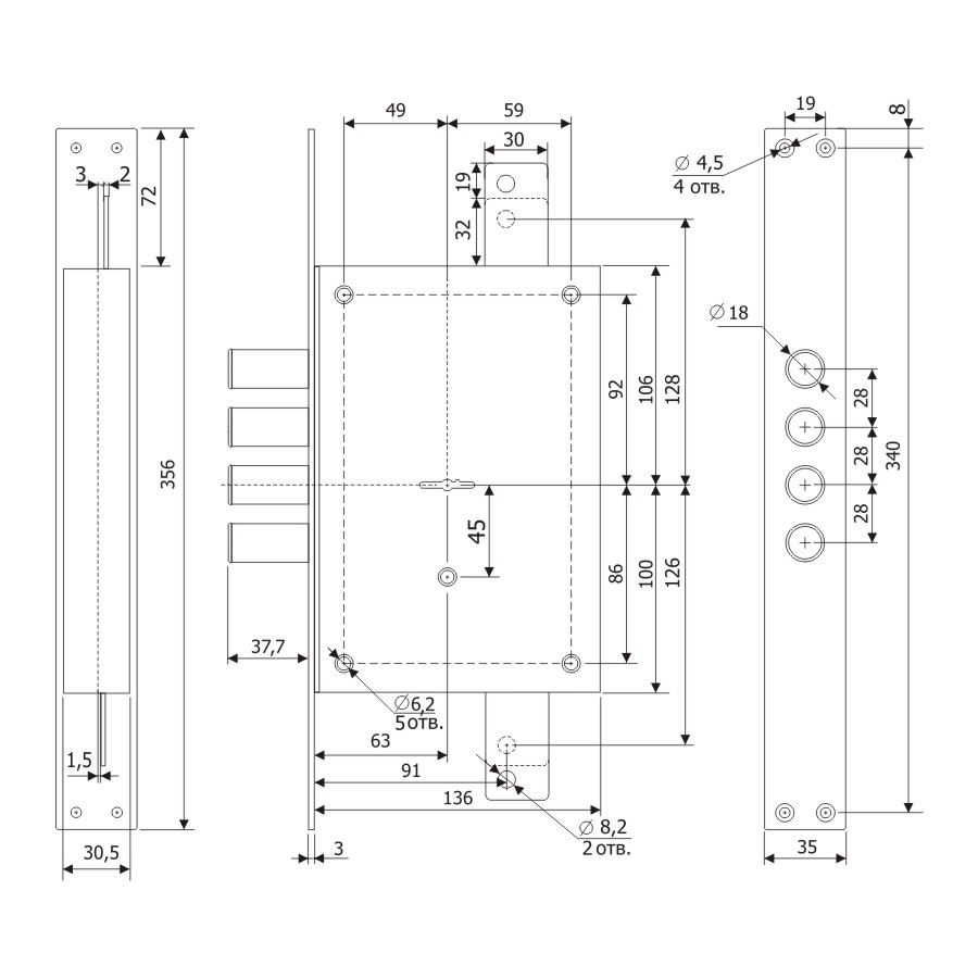 | Вылет ригелей | 37,7 мм |