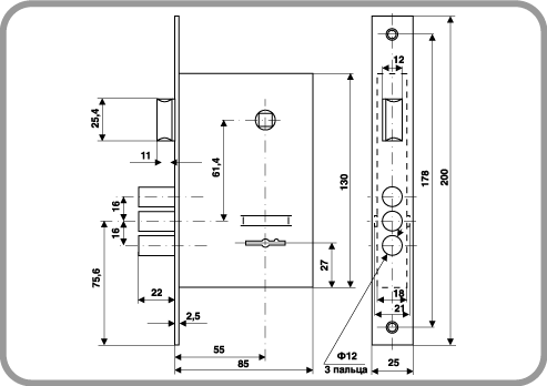 | Удаление ключевого отверстия (Backset) | 55 мм |
