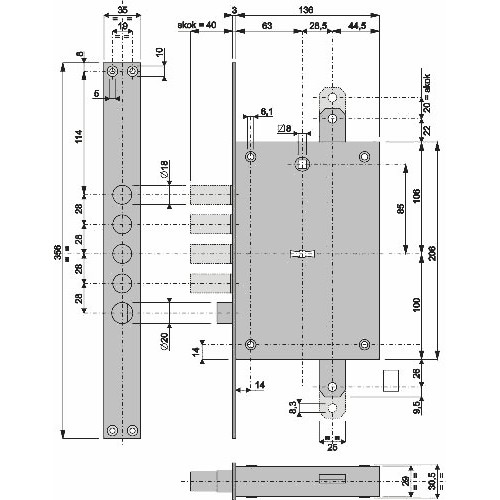 Замок врезной сувальдный Mottura-52.771 (Моттура) пять ключей, вертикальными тягами и верхней реверсивной защелкой. Цвет лицевой планки-хром. Удаление ключевого отверстия 63 мм. Есть возможность установки ручек. Межосевое расстояние 85 мм. Рекомендован для установки в бронированные металлические двери. Ручки в комплект не входят.