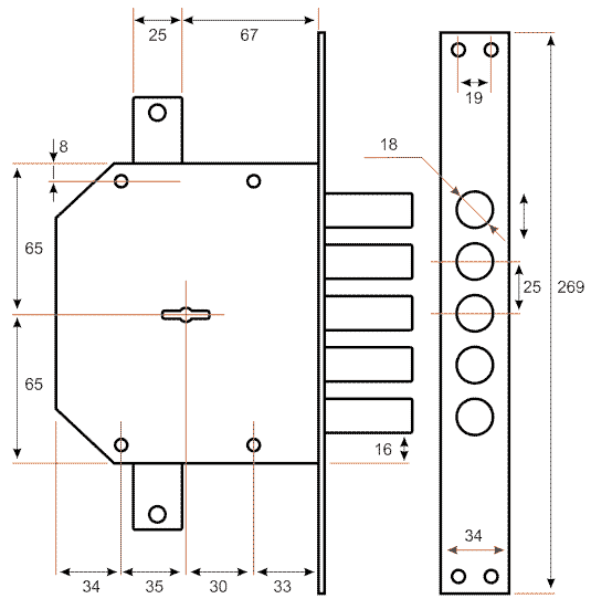 Замок врезной MOTTURA ЗВ 52.783 (универсальный), без накл.