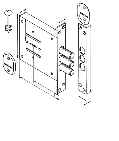 Замок врезной 8-ми сувальдный, без переналадки устанавливается на правые и левые двери, с наружной и внутренней стороны открывается одинаковыми ключами.