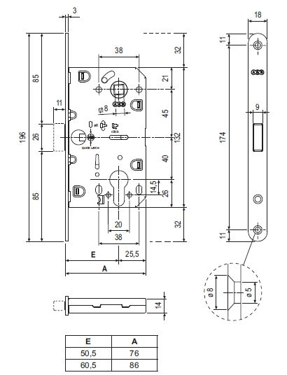 Замок межк. под цил. MEDIANA POLARIS B06103.50.12.567 с отв. пл. B02402.05 (ант бр)