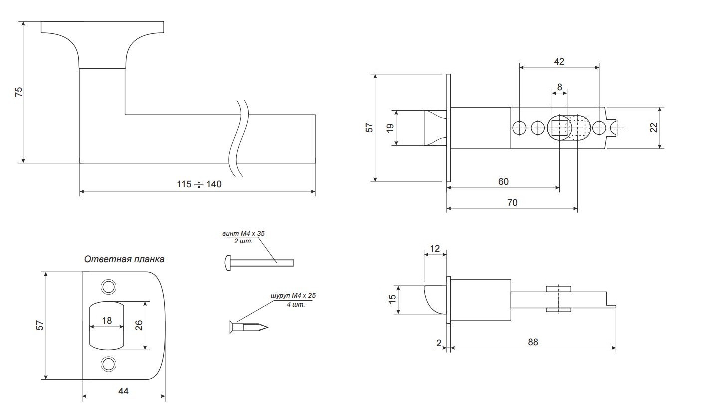 Ручка защелка DK620 AC-ET (6020 AC-E) (кл./фик.) медь