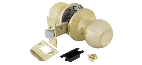 Комплект дверных ручек с защелкой (KNOB) Punto коллекции SIMPLE LIVING 6072 SB-P предназначен для установки в межкомнатные двери толщиной 35-45 мм. Подходит для дверей правого и левого открывания. Гальваническое покрытие прошло тест на устойчивость к коррозии в соляном тумане - более 72 часов. Ресурс работы ручек-защелок более 150 000 циклов открывания/закрывания, что гарантирует безотказную работу двери более чем на 15 лет. Бэксет защелки регулируется - 60/70 мм. Материал изготовления: сталь. Модификация: без фиксатора. Цвет: матовое золото. Комплектация: защелка, ответная планка с декоративной заглушкой, дверные ручки, крепежная фурнитура, шаблон и инструкция по установке.